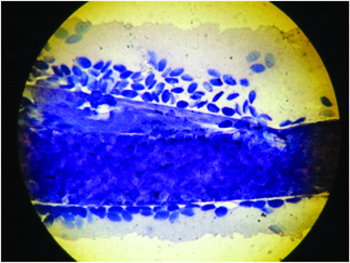 At our institution from April, 2003 to March, 2013, a total of 25,468 were carried out from superficial sites. Microfilaria can be easily diagnosed using hematoxylin stain, Giemsa stain or methylene blue and eosin. We have been using Giemsa stain at our centre. The incidence of detection of microfilaria was only 0.078% (Total 20 cases). In none of those situations, the patient was referred for FNAC with the suspicion of Filariasis as primary diagnosis. Presence of microfilaria at these sites was more of an incidental finding. Similar observations of very low detection rate of microfilaria from superficial sites have been reported by some authors [6]. In our study, the causative agent in all cases was W. bancrofti similar to the national survey in India which puts estimates of 95% cases caused by W. bancrofti [3].