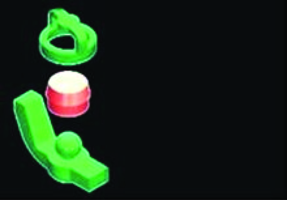 Attachment used in this case was Rhein83 OT CAP Inc. USA [Table/Fig-7]. It is an extracoronal castable attachment positioned on the distal of the crowns as an extension allowing vertical space for optimal aesthetics. The castable OT male CAP can be easily shaped with the crowns during wax-up stage. Precision attachment offers considerable advantages in dentistry because of their flexibility. It is a well known fact that the movement of RPD transmits force to the distal most abutment. To minimize the stress on distal abutment we have followed the philosophies of impression making of distal extension situation [17] and by using semi precision attachment which will act as a tress breaker.