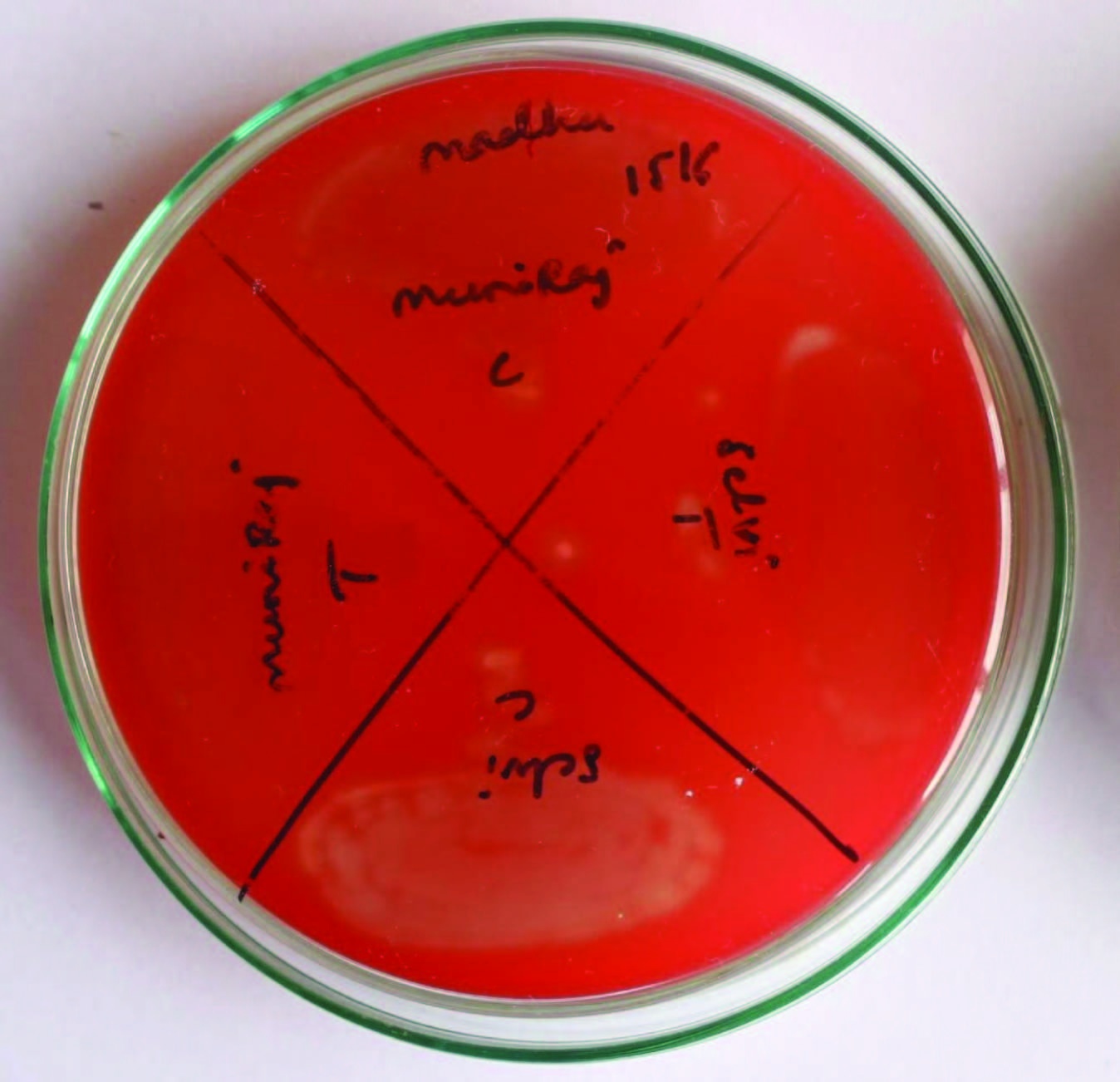 Decrease in microbial colonies seen at test sites compared to control sites. Test sites are represented as “T” and control sites as “C” in the figure