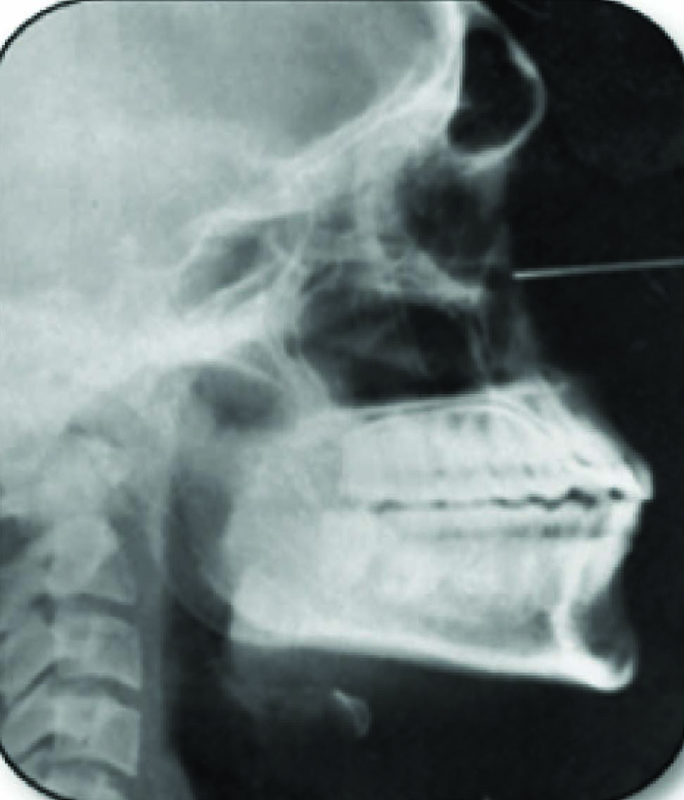 [Table/Fig-1,2]. Shows X-ray films in 8” x 10” dimensions in cassettes with intensifying screens were used in this study. The cephalograms were taken with a 5ft target film distance, voltage 85 Kvp, current 37 mA and exposure time of 1.3 sec. The structures were reproduced as accurately as possible. Wherever two borders were seen, the mean was taken.