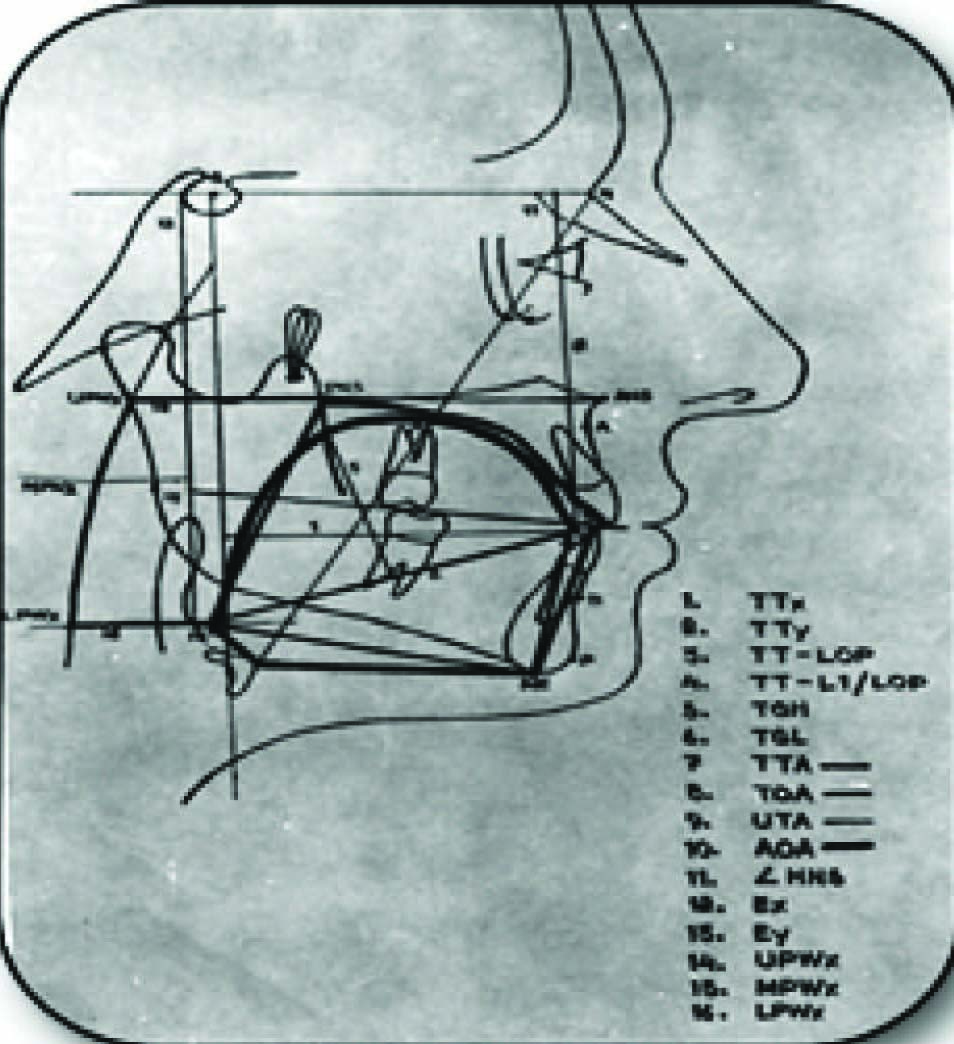 Photograph of Cephalometric trading showing tongue and soft tissue measurments