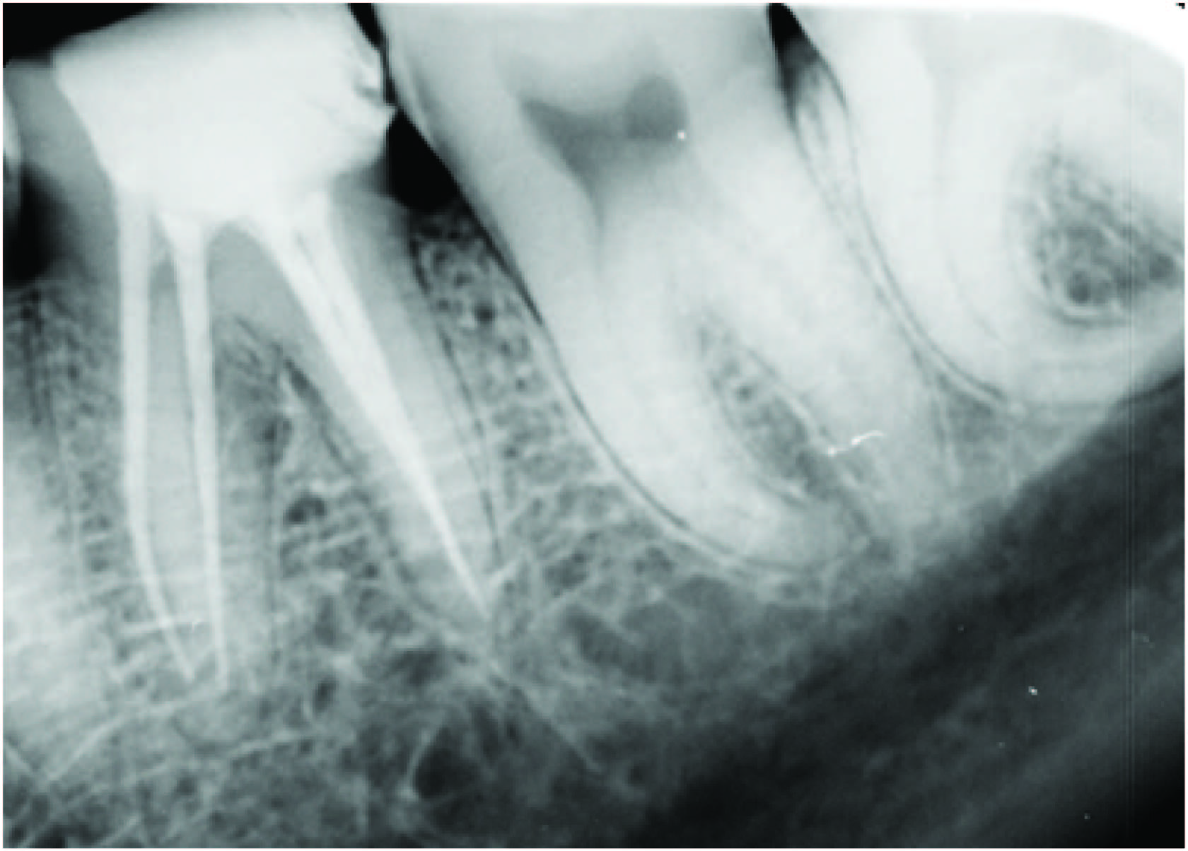 Intraoral periapical radiograph showing obturation in all four canals
