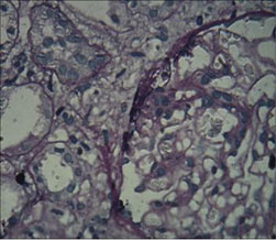 FSGS is the second most common cause of nephrotic syndrome in adults, as in some countries prevalence of FSGS has been greater than membranous nephropathy especially at recent decades [1] . Two forms of FSGS were described, as primary or idiopathic FSGS which most often presents with the nephrotic range proteinuria and secondary FSGS, with non-nephrotic proteinuria and often some degree of renal insufficiency [2] . Histological types of FSGS consist of Classic FSGS, also called FSGS NOS that is the most common form, Collapsing, Tip, Perihilar and Cellular variant [3,4] . The patients with tip lesion type may are to present abruptly with the nephrotic syndrome and are more likely to respond to glucocorticoid therapy and some patients may undergo spontaneous remission without immunosuppressive treatment [5,6] .