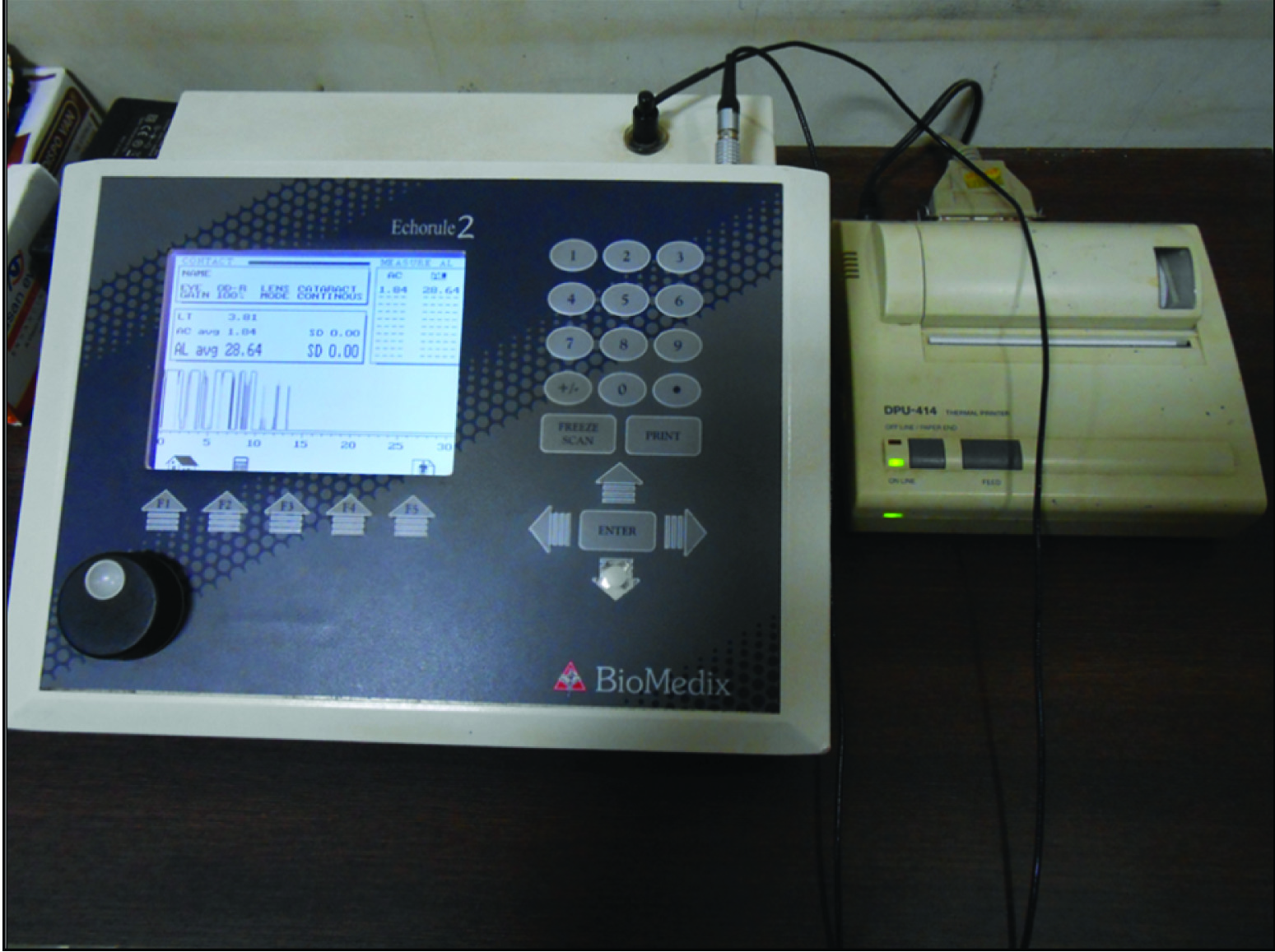 Ultrasound machine ‘Biometric A-Scan’ that was used for measuring the palatal gingival thickness