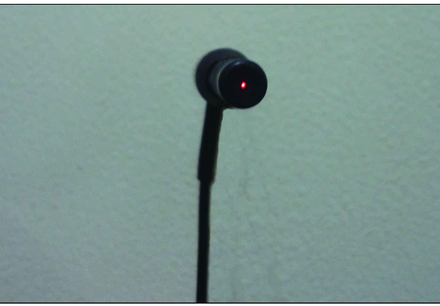Transducer probe attached to the A-scan machine and the red dot depicts the effective beam