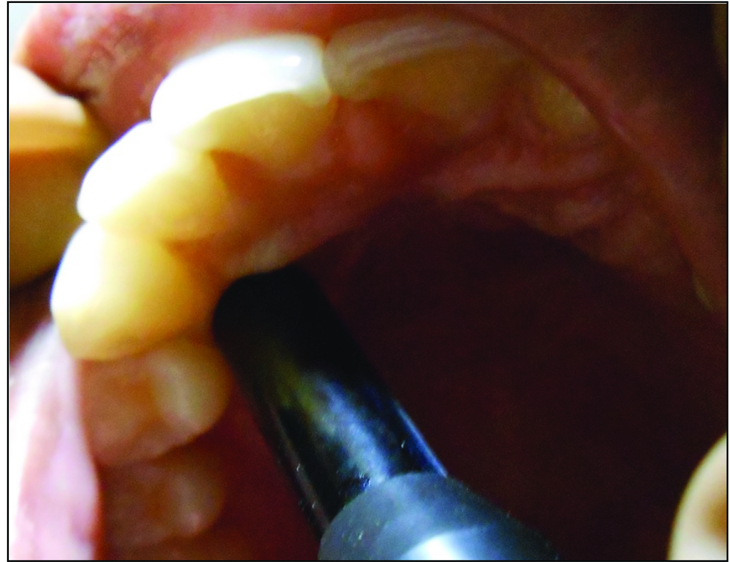 A total of 50 periodontally healthy subjects (25 males; 25 females) with an age range of 18-23 years were included in the study. The subjects had healthy gingiva with no evidence of bleeding on probing, suppuration or any other clinical signs of inflammation. Subjects with probing depth ≤ 3 mm and with intact interdental papillae in the maxillary anteriors, premolars and molars were included. The teeth examined were devoid of caries or restorations. Subjects having crowding or spacing in maxillary teeth were excluded. Teeth with attrition, abrasion, erosion, subjects taking any medications, subjects undergoing orthodontic treatment or who underwent orthodontic treatment in the past, medically compromised patients, patients having cardiac pacemakers, pregnant women and lactating mothers were excluded from the study. Written informed consents were procured from the subjects prior to the procedure. The study was approved by the Ethical committee of the institution.