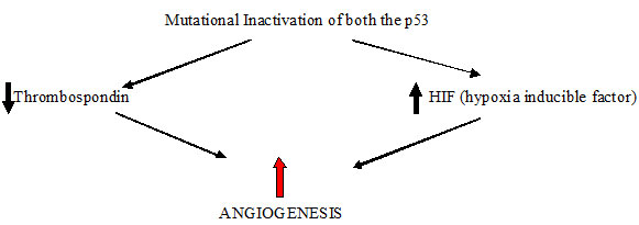 According to the experimental and clinical data most human tumours do not induce angiogenesis and exist in situ, without blood supply for months to years, when some cells within small tumour change to an angiogenic phenotype by a phenomenon known as angiogenic switch. The molecular basis of this mechanism may be increased production of angiogenic factors or loss of angiogenesis inhibitors [Table/Fig-2,3] [3]. Thus, the switch to an angiogenic phenotype is regulated by a change in the equilibrium between positive and negative regulators of angiogenesis [7].