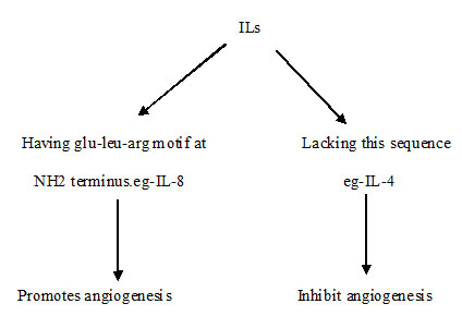 The structure of interleukins (ILs) determines its function to play a role in either promoting or inhibiting angiogenesis [Table/Fig-5].