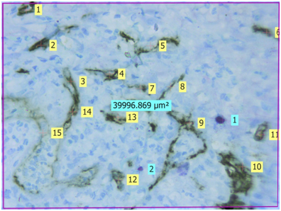 Blood vessel density (BVD): Blood vessel density was calculated from each 4 fields using the formula-