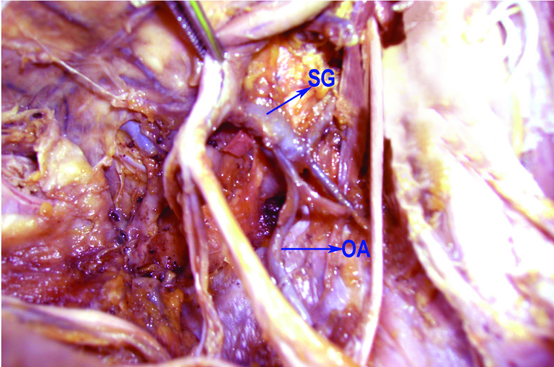 Obturator artery (OA), one of the branches of the anterior division of the internal iliac artery, courses downwards and forwards on the lateral pelvic wall to reach the upper part of the obturator foramen, and leaves the pelvic cavity by the obturator canal [1]. Within the pelvis it gives off iliac, vesical and pubic branches. It divides into anterior and posterior branches to supply the medial compartment of the thigh. Posterior branch gives off the acetabular branch, which enters the hip joint [1].