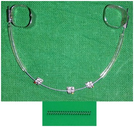 Orthodontic separators were placed in between contact points of 16, 15 and 26, 25. Bands were selected according to mesiodistal measurement of maxillary first molars, each band was welded by a molar tube on buccal side (Buccal Tubes Round Weldable, Nibha Dental Corporation) bands were cemented onto both maxillary first molars and brackets were bonded on maxillary incisors (Tehoo Mini MBT Brackets, .022inch Slot, Lot No 4112, manufactured by Libral Traders Pvt. Ltd) with adhesive (Solo, Universal Bond Enhancer, Lot no 5017637, Glendora, CA. Ormco, ENLIGHT, Light Cure Adhesive, Lot No 5067256, Glendora, CA). An aligning rectangle nickel titanium arch wire of. 016 X.022inch (N-Force, Nickel- Titanium preformed archwire, Made in USA) was placed.