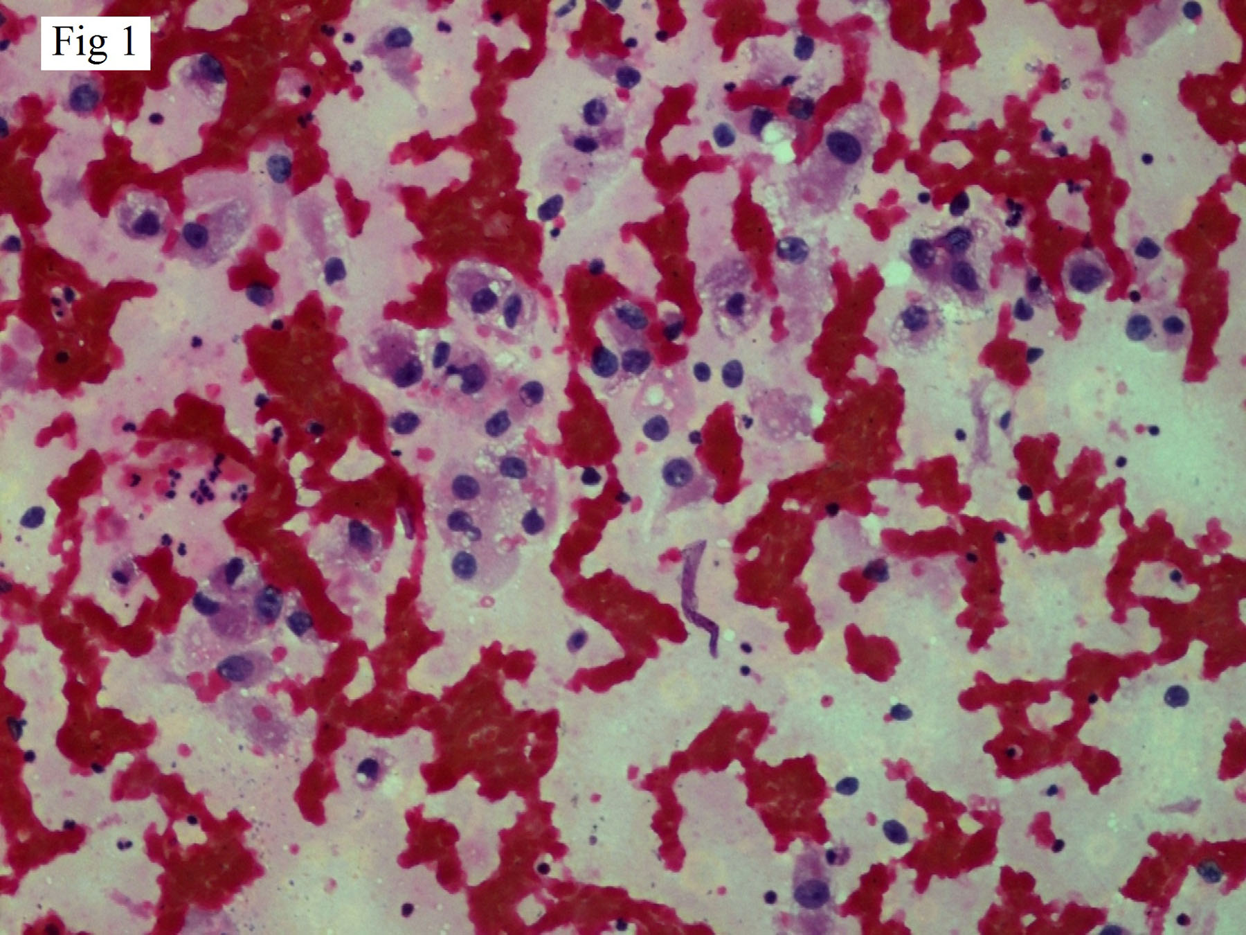 In present case first impression on smear examination was of metastatic carcinoma, either metastatic RCC or clear cell sarcoma/melanoma. Clear cells of RCC at low power are relatively cohesive, mainly in epithelial fragments with variable number of scattered single cells. Focal papillary or acinar pattern may be seen. These cells have an abundant fragile finely vacuolated cytoplasm giving a web like appearance. The tumour cells have low nucleo: cytoplasmic ratio, central/eccentric round nuclei with regular outline and variable anisokaryosis. Nuclear chromatin is bland in low grade tumours and macronucleoli are seen in higher grade. Diagnostic clues for RCC are - rich arborising vasculature, tumour cell adhering to strands of hyaline/fibrillary basement membrane material and intranuclear cytoplasmic inclusions. Binucleation and bare nuclei are seen. The clear cells of RCC contain lipid (Oil-Red O positive) and glycogen (Periodic Acid Schiff {PAS} stain positive). Clear cell melanoma (CCM) displays morphologic overlap with balloon cell melanoma (BCM) and clear cell sarcoma (CCS) in having abundant finely vacuolated cytoplasm. CCM is PAS-positive, diastase-sensitive, whereas BCM is PAS-positive, diastase-resistant. Some authors consider CCM as a subtype of BCM but it’s still unclear. CCS is also called as malignant melanoma of soft parts and presents in extremities of young adults. Abundant intracellular and extracellular iron is present and cytoplasmic melanin can also be seen. Smears are composed of largely dispersed cells with occasional aggregates or epithelial-like clusters.