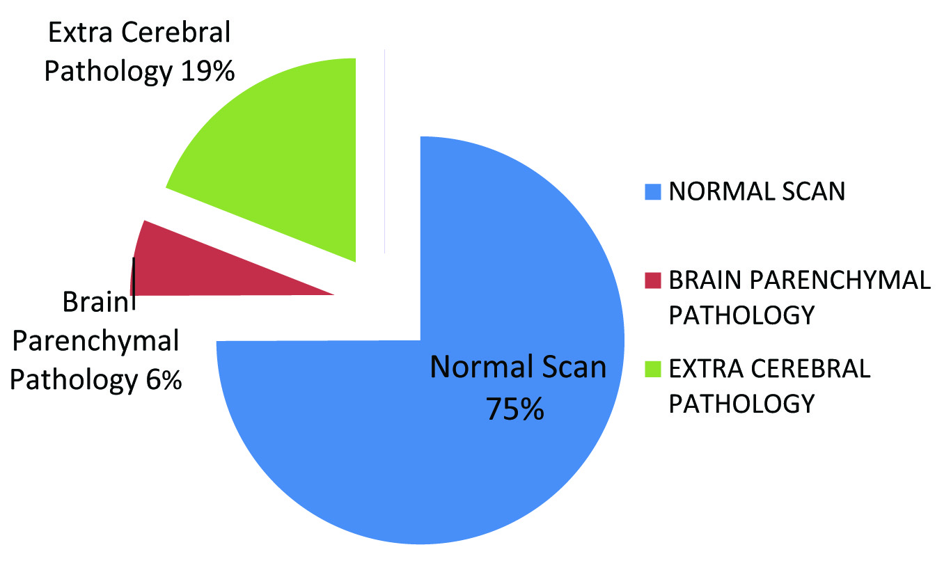 Various studies have been conducted at different parts of the world at different time to assess the utility of CT and MR Neuroimaging techniques in patients with headache [11–13]. One such study which was conducted at Samsun, Turkey among 70 patients to investigate the incidence of intracranial pathology by CT scanning amongst adult patients who meet Clinical Warning Criteria (CWC) for secondary headaches and to determine the importance of CWC in predicting a possible lesion on CT scan [11]. The CWC is consisting of sudden onset of headache, rise in the frequency and intensity of headache, frequently changing character of headache, no response to analgesics and headache associated with focal neurological symptoms. The results of the study revealed 64.3% of CT scans of head was absolutely normal and 35.7% Scans manifest a positive finding which probably responsible for headache. The rate of detection of positive finding was quite higher among patients who meet CWC criterion [11].