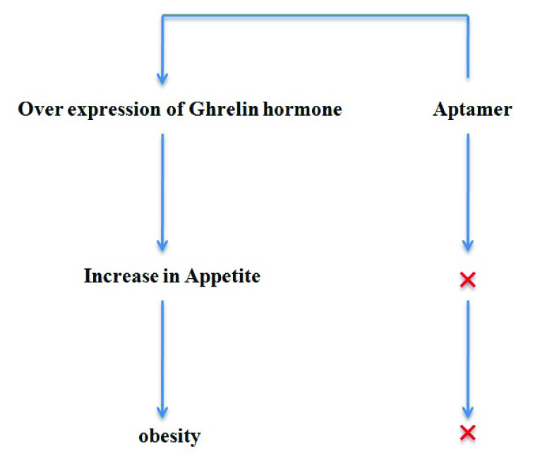 The NOXXON Company has developed spiegelmers (L-aptamer) against ghrelin, a peptide hormone associated with appetite and weight gain [Table/Fig-5]. This aptamer can serve as an anti-obesity drug and the animal test has already shown positive results in rats [36].