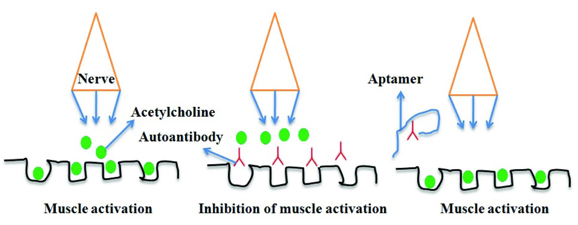 DNA aptamer binds specifically to AChRs autoantibody.