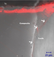 Confocal phase contrast image of control group teeth without pre-heating composite (37°C) showing mild micro leakage.