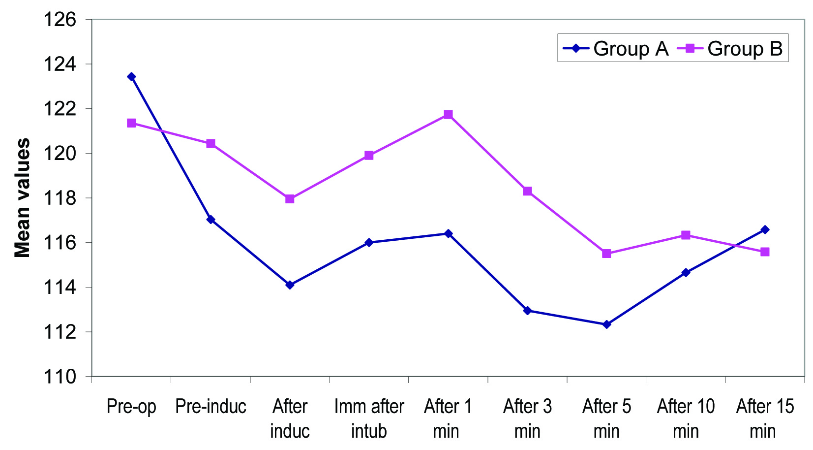 BP (SBP, DBP and MAP) and heart rate were recorded immediately after intubation, then at 1 min, 3 min, 5 min, 10 min and 15 min after intubation.