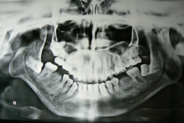 Results: A total of 10 patients with TMJ ankylosis were successfully treated by interpositional gap arthroplasty. Mean age of the patients was 8.6 years. All the patients had a history of trauma to the TMJ which could be the aetiological factor for TMJ ankylosis. Patients had pre-operative maximal mouth opening at incisal edges of 1-11mm, (mean 6.8mm). Patients had maximum mouth opening of 30-38mm (mean 34.5mm) on last follow-up (mean 4.1 years). Transient paraesthesia of the temporal branch of facial nerve was observed in 1 case which was recovered within 3 months by conservative treatment. Periodic OPGs were obtained to check the maintenance of the intra-articular space [Table/Fig-10]. There were no signs of recurrence in any patients up to last follow-up visit [Table/Fig-11]. Overall results of all the cases have been described in [Table/Fig-12].