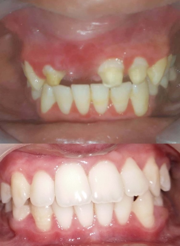 A 19-year-old female patient reported to the Department of Periodontics with a chief complaint of swollen lips and swollen gums. The patient had a Fixed Partial Denture (FPD) in relation to tooth # 11, 12, 21, 22, region which was done two years before. After two months of placing, she noticed a mild reddish discoloration involving both upper and lower lips, which progressively increased in size without any apparent discomfort but difficulty in maintaining closed lips in relaxed state. There was no association with pain but profuse bleeding on brushing was noted. Gingival swelling was also noticed at the same time. The patient had no reportable medical history. Clinically gingiva appeared fiery red in color, friable with oedematous consistency and smooth and shiny granular surface texture with exaggerated contour [Table/Fig-1]. Since all food allergens cannot be tested, suspected food allergens were tested. Investigations like skin prick test, trial elimination test was performed to rule out allergy due to food like brinjal, kenaf, cinnamon, sea foods, mushrooms and serum IgE levels were also examined. Food allergy and allergens could not be identified and hence, we thought of removing the FPD which was hindering the healing.