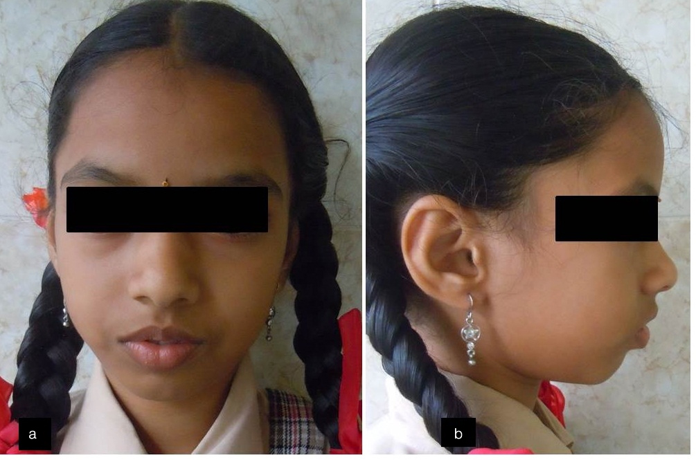 Extra-oral photographs (a) Frontal view; (b) Lateral view.