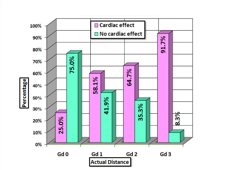 Cardiac effect by actual distance.