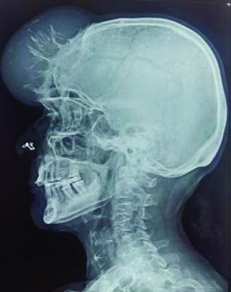 X-ray of the skull showing an osteolytic legion in the fronto parietal region;
