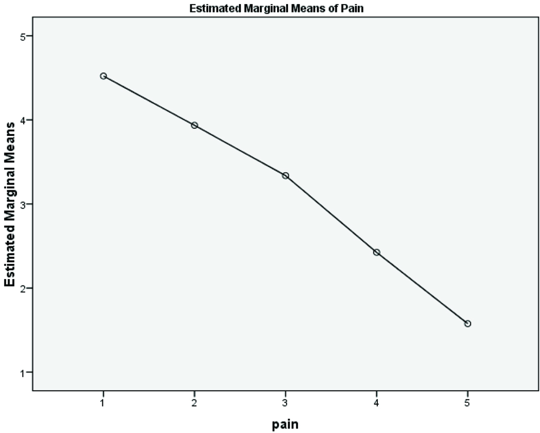 Repeated measurement analysis of pain between groups.