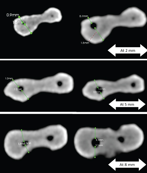 Pre and Post instrumentation CBCT scans at levels 2 mm, 5 mm and 8 mm.