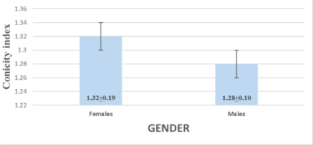 | Conicity index | 1.16±0.08 | 1.36±0.15 | -14.81 | 0.001 |